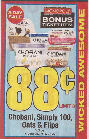 Buy (3) Chobani Greek Yogurt on sale for $.88 each