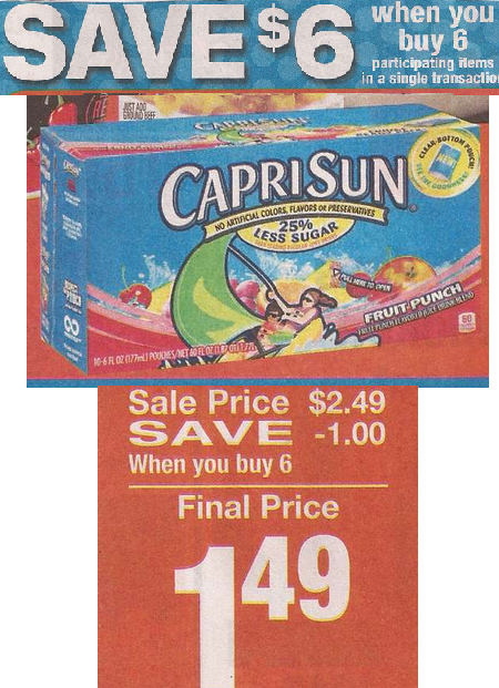 Buy (3) Capri Sun 10 ct on sale for $1.49 each wyb 6 items
