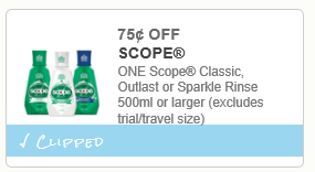 And use (1) $1.50/2 Scope Classic, Outlast Or Sparkle Printable Coupon